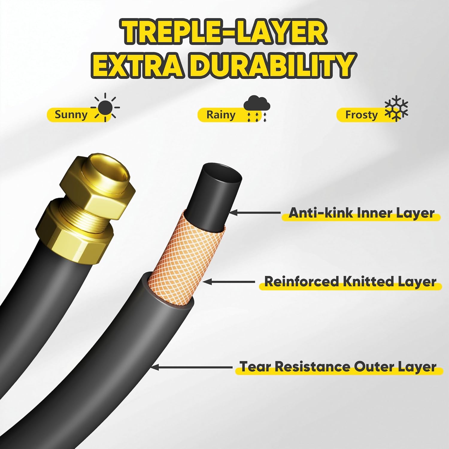 - Triple-layer PVC hose with leak-proof brass fittings ensuring reliable water flow